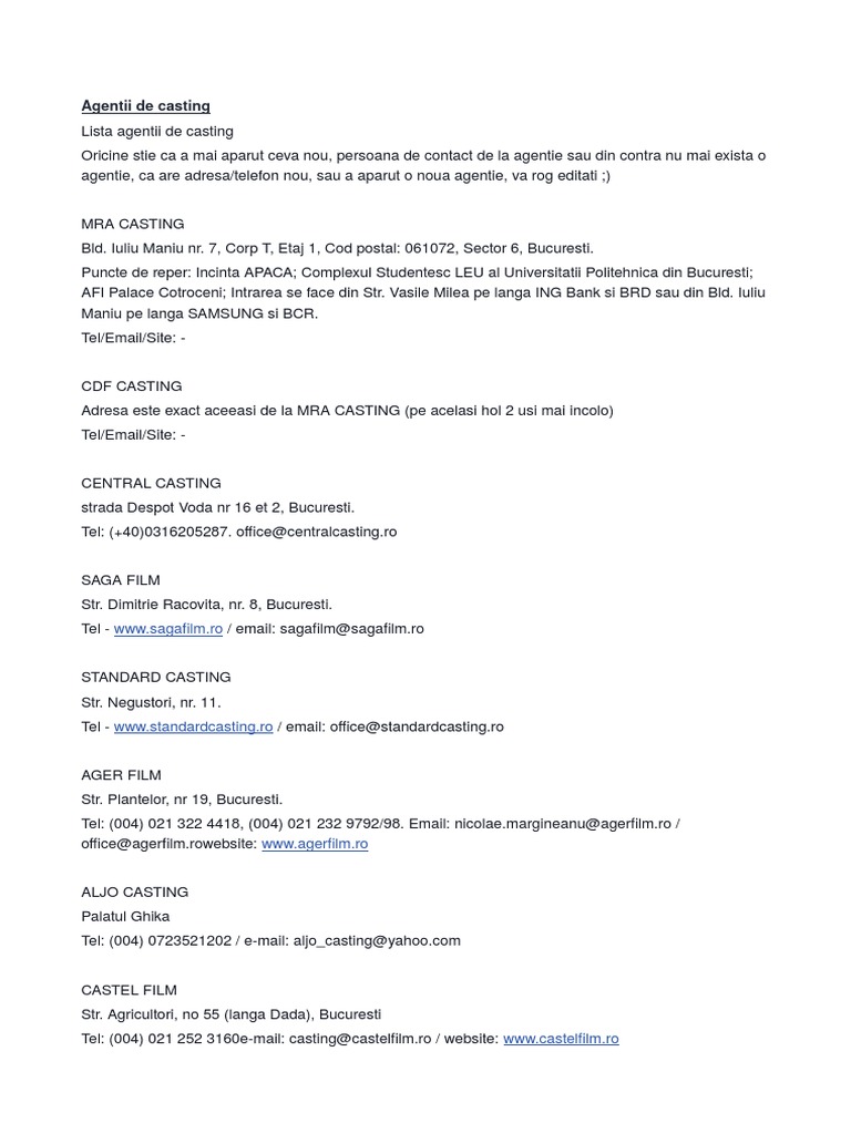 Agentii De Casting Bucuresti