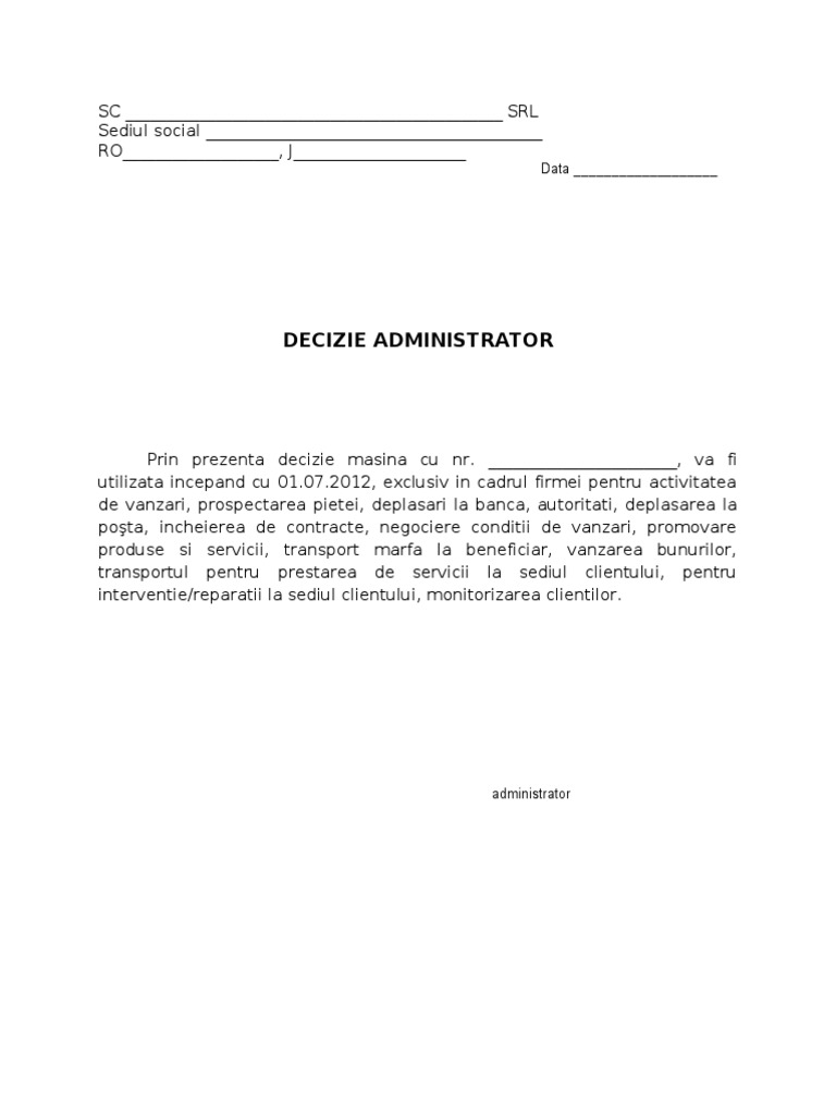 Decizie Alocare Autoturism Pentru Nevoile Firmei Model Cabinetexpert Ro Blog Contabilitate