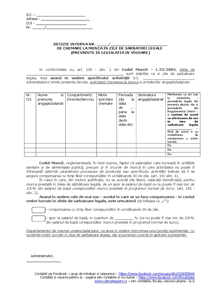 Decizie Sarbatori Legale