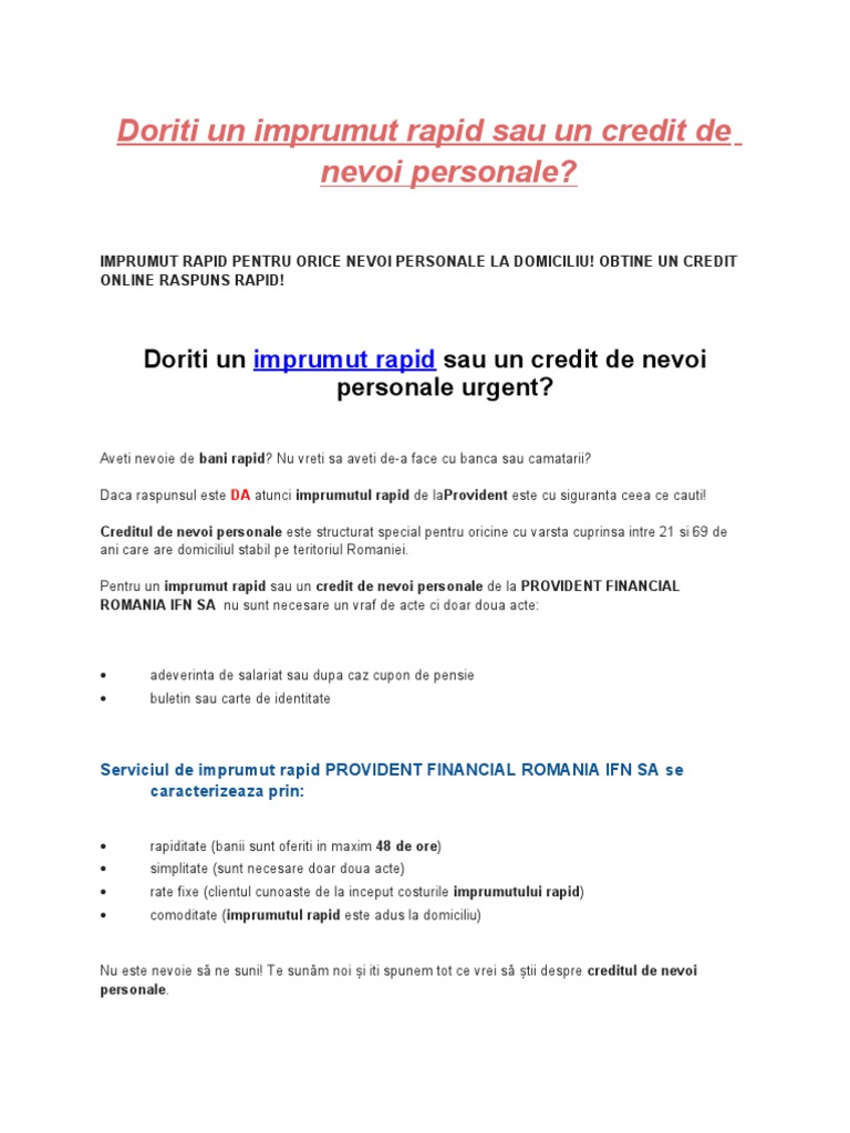 Credit Rapid Credit Online Sau La Domiciliu Provident